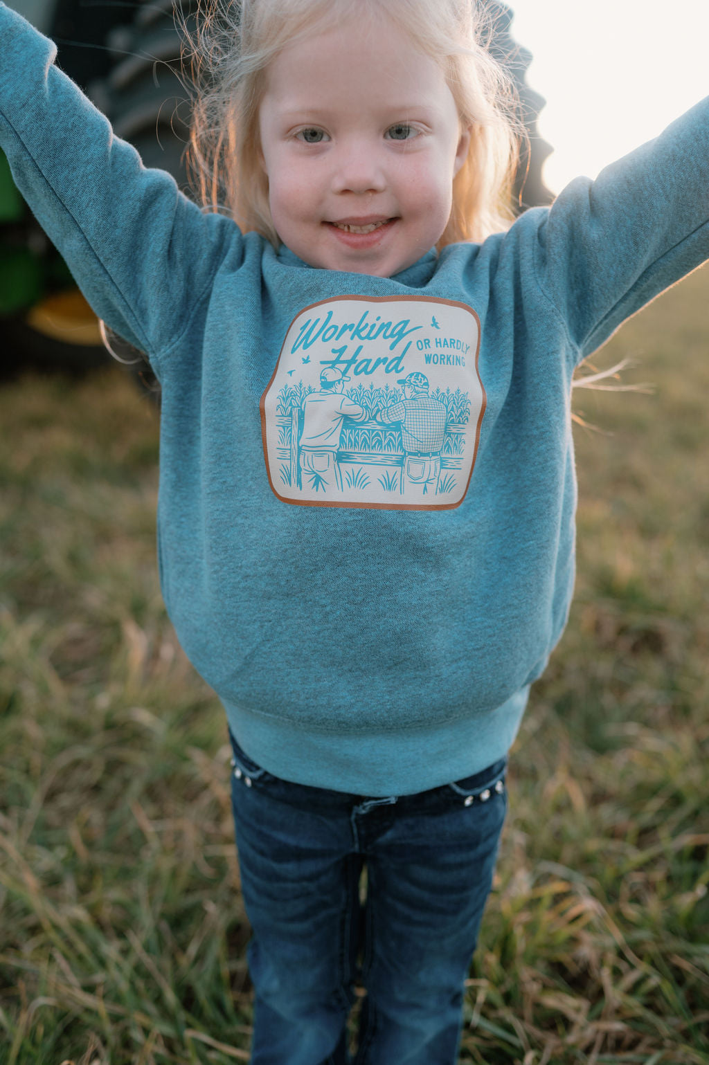 For the little helpers who are always right in the middle of it all — whether they’re “working hard” or just along for the ride. This cozy hoodie celebrates the simple, slow moments on the farm — like tagging along in the tractor, checking the fields, or taking a snack break with Dad.
