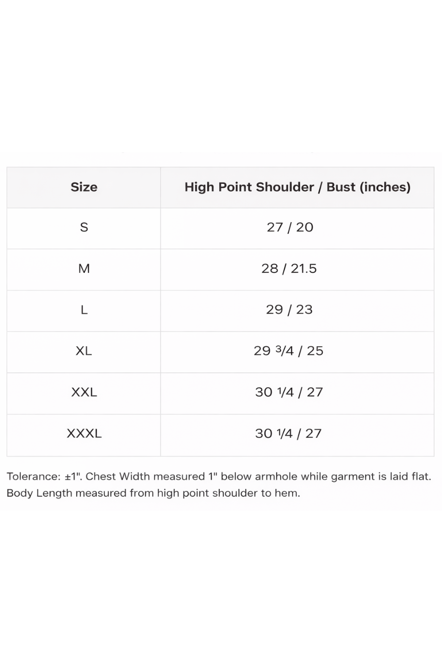 High Point Shoulder/Bust in inches